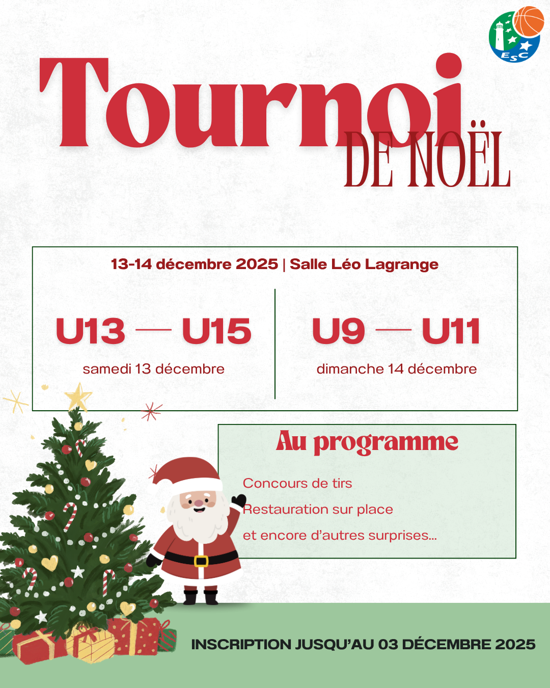 L’ES Couëron Basket est heureux de vous accueillir pour son Tournoi de Noël 2025 à la salle Léo Lagrange, à Couëron La Chabossière.